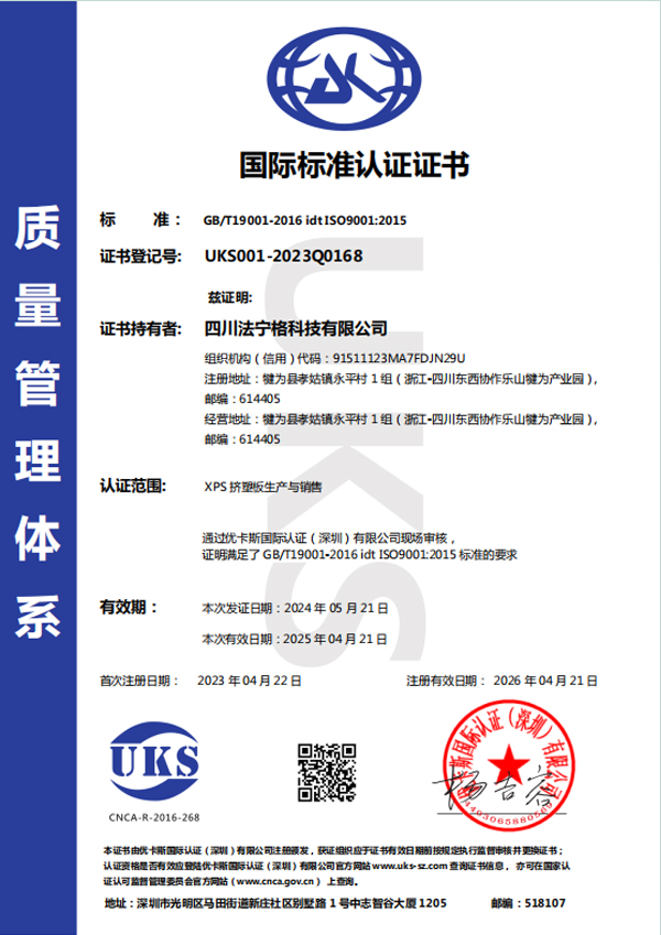 四川法宁格科技有限公司,是XPS挤塑板产品设计、销售为-体公司,四川法宁格科技有限公司是2022年1月份注册在四川省乐山市犍为县孝姑镇工业园区的一家集技术服务、技术开发、技术咨询、技术交流、技术转让、技术推广;塑料制品销售;塑料制品制造;汽车零部件及配件制造;摩托车零配件制造(除依法须经批准的项目外,凭营业执照依法自主开展经营活动)。冷库施工专业作业。公司主营产品:XPS挤塑板的生产